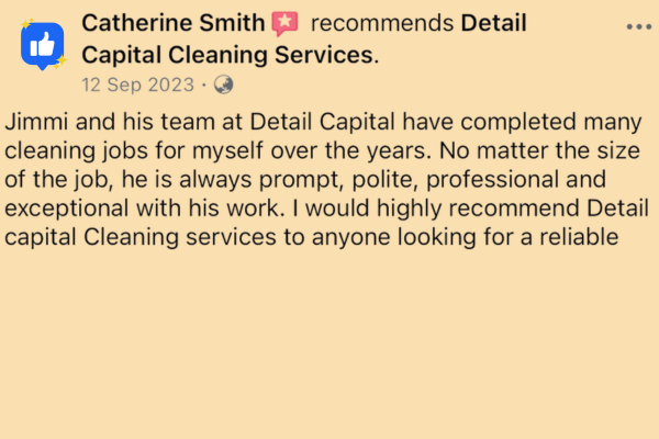 Detail Capital Cleaning Services, winner of “Australian Trade Small Business Championship Awards 2024 – Commercial Category” with over 10+ years of experience and 5+ years of running the business, DCCS takes pride in receiving over 100 five-star reviews on our Facebook page, reflecting the exceptional quality of our cleaning services.